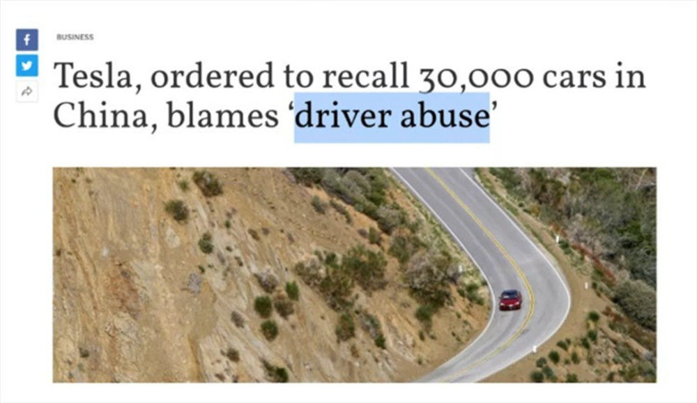 为此傲娇的特斯拉还向那个虐它千百遍的NHTSA诉苦,称“不管是美国还是中国的Model S和Model X车型,它们都采用同样的悬架系统,中国市场悬架发生问题的概率达到了0.1%,全球其他地区车型发生问题概率为0.05%,证明是中国车主使用不当造成,车辆本身并无问题。”就这样把锅甩给了中国消费者,真不愧是逻辑鬼才和“甩锅达人”。