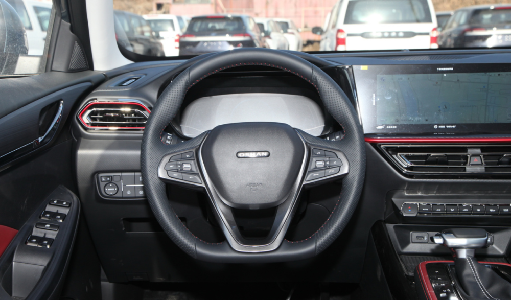 长安欧尚x5的设计极具有运动气息,包括平底式的三幅式方向盘以及由红色饰条破开的中控台区域,甚至就连他的液晶仪表盘都采用了不规则的设计,还是非常吸引人的。