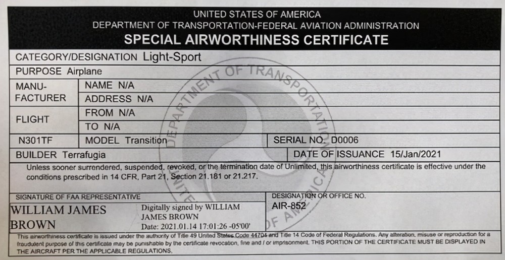 全球首个飞行汽车适航证颁发