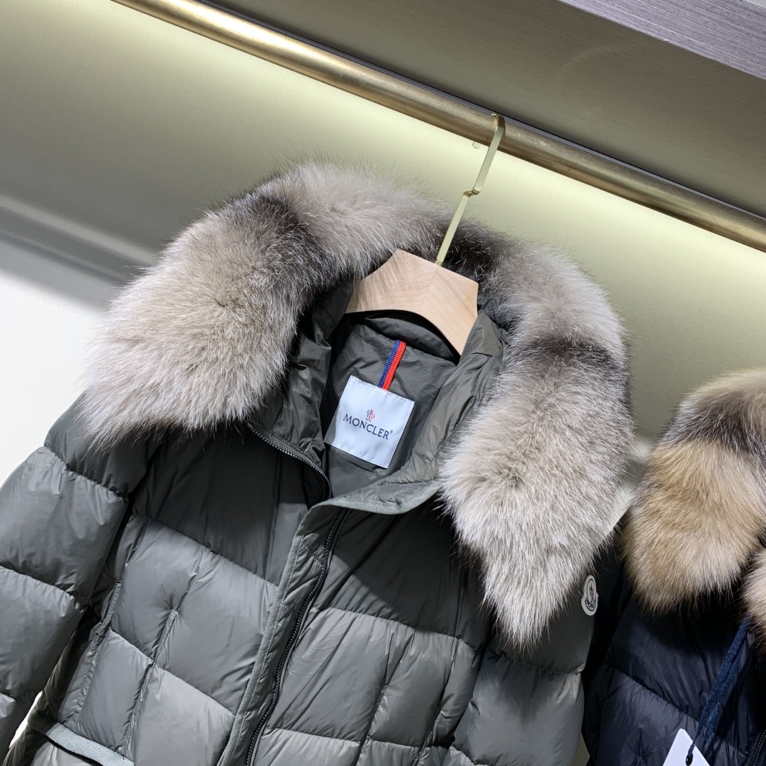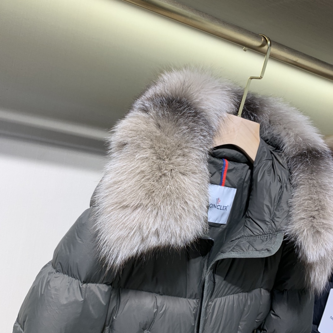 MO蒙女款短款大毛领羽绒服!这款专柜上市就一抢而空,最抢手的款了,这款绝对是羽绒服之王,满足了我对羽绒服所有的幻想! 不仅保暖,还有型,上身效果非常好,自带腰身曲线,不显臃肿已经算不错了,这种保暖御寒的同时还带着QIANG大的气场 ,绝了吧!从头到脚给予你足够的温暖,高腰线设计,把人体统一在一个长线内,独立的腰带一收腰,最大程度的拉高身形,修身显长。这一切必将铸就新一代的时尚!!!每一条银狐毛领都是芬兰客供JIN口的都是独YI无二的存在,原色未染色,野生稀有狐狸毛就是不一样,摸起来超柔软,很有光泽也很细腻,软软的巨舒服,90欧标绒填充!真正DING级的柔软度保暖度都是无可比拟,收到货用手摸一下感受下没有任何杂质,松软是最直观的感受...冬天显瘦保暖神器!美丽与温度并存!经典黑色百搭,腰部有腰带做配饰不臃肿显瘦,所以是保暖必备佳品! 白色冬季的绝配色,柔柔软软的摸着很舒服!这款线条做的特别好所以即使是白色也不嫌臃肿!我冬季最不喜欢白色但真的被这款所俘获!OmG,没错买他! 专柜新色:超级正的颜色,没有哪个大牌冬天敢尝试这个颜色,只有超级大牌的蒙口才有这个胆量!这个颜色客户要提前预定才有哦!非常适时尚个性!!! 颜色:黑色,绿色 尺码:1.2.3. 4微信sys225888