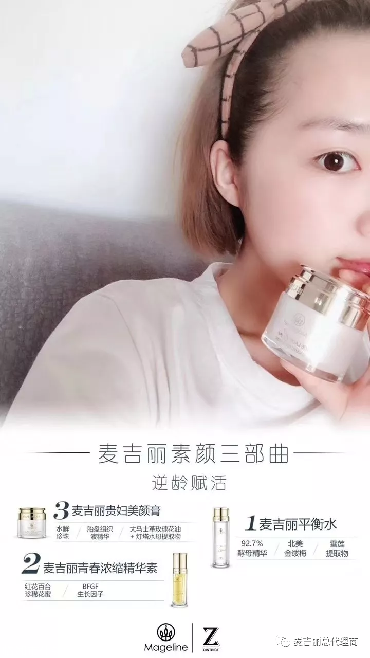 麦吉丽已经是国内的护肤产品,想要代理的人也越来越多,而代理麦吉丽的门槛比较低,不论是带娃的宝妈还是想要创业的大学生都可以做。麦吉丽在全国各大城市商场、专柜、实体店都能见到它的身影,而且还有郑凯、尹恩惠等一线明星签约代言 麦吉丽代理------眼霜在很多女生心中被认为是脂肪粒的源头,实际上导致脂肪粒的不是眼霜,而是你不合格的眼部护理。眼眶皮肤细嫩,是非常容易造成肌肤损伤的,就算是化妆棉、头发丝刮过,也会出现一些看不见的伤口。这时候再加上护肤品的涂抹,就是眼部容易产生脂肪粒的原因了。麦吉丽花花V:1032309371
