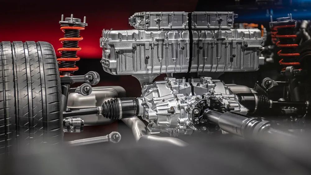 这样的发动机+电池布局结构是为了优化底盘重量分布、以及动力输出是最快扭矩释放,保证车辆的动力性能。此外,后桥上的电动机与2速变速器和后桥差速器集成在一起,形成EDU控制系统,并且电机可直接驱动后轴,无需通过变速器传递,减少动能传动丢失,加速性能更加高效。