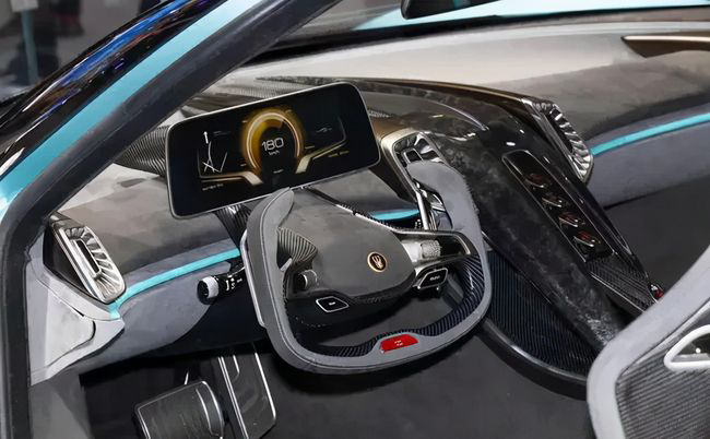 内饰方面,可以用奢华+科幻来形容了,车内采用了大量的碳纤维与翻毛皮材质,不仅配备有全液晶的仪表盘,而且还配备有和F1方程式赛车同款的方向盘。此外,红旗S9中控台空调出风口下方,有一条红线一直延续到中央扶手箱。