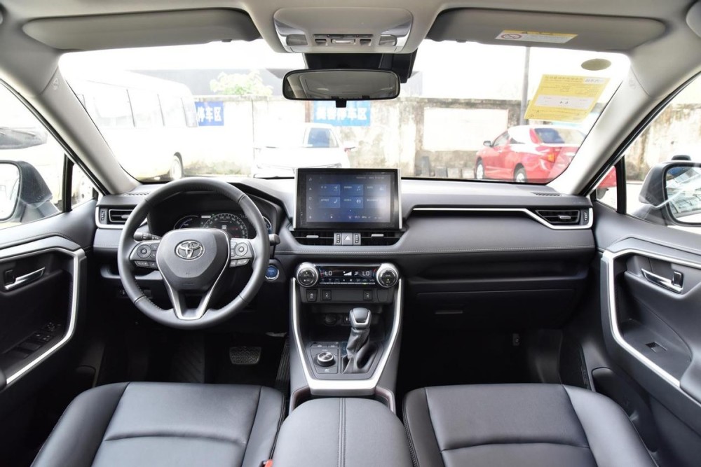 来到车内,荣放的内饰相比本田CRV,做工品质体现在细腻的用料材质,例如在中控的中间部分,荣放使用了细腻柔软的皮质包裹,整齐的缝线做工更为提升内饰的精致感。工作台的储物设计较为人性化,换挡杆前方预留出可以搁置手机的储物盒,并且配备有USB电源接口。空调旋钮尺寸较大,带有阻尼的手感也更符合人机工学,最重要采用这样的设计便于盲操。而内饰不足的是荣放的中控屏厚度过厚,如今手机、电视机、电脑越做越薄,而对于像丰田这样大牌车企,我认为造出一款科技感,具有美感的中控屏并不困难。