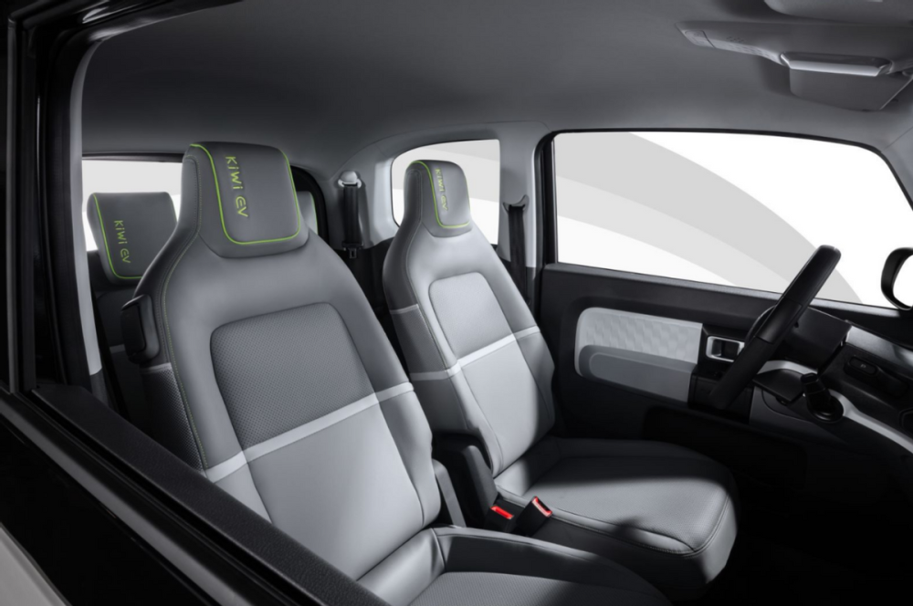最后再聊聊空间方面,座椅部分,KiWi EV采用了四座布局,在副驾设有后排一键进出的按钮,故而在乘坐便利性上,还是不必担心的。与此同时,KiWi EV的后排座椅也可进行5-5比例的纯平放倒;容积的话,同时放入3个20英寸的行李箱,都是没问题的。包括在车内储物空间上,KiWi EV也有着7处便于放置小物件的地方。