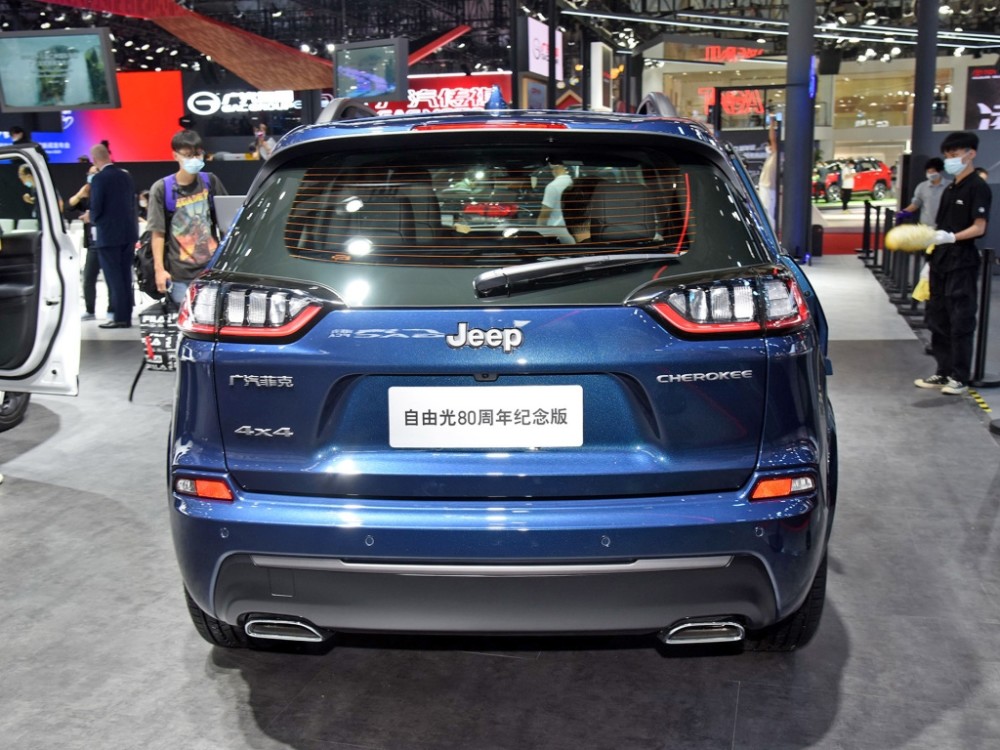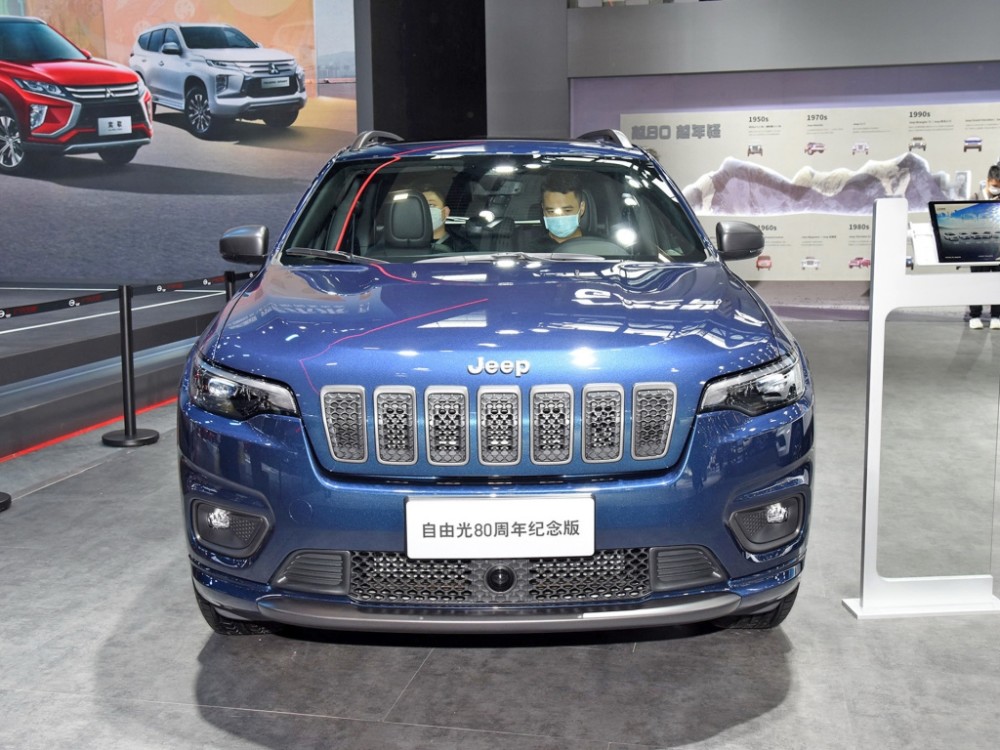 外观方面,图片中为80周年纪念版,但新车整体外观和其它版本车型基本相同,前脸依旧采用了家族七孔进气格栅,内部和下进气口一样,均采用了网状设计处理,使其更加运动年轻化。该车大灯组采用了矩阵样式设计,使其更吸睛,与雾灯一样均为LED光源,配置很高,结合简约的“Jeep”车标,辨识度极高。