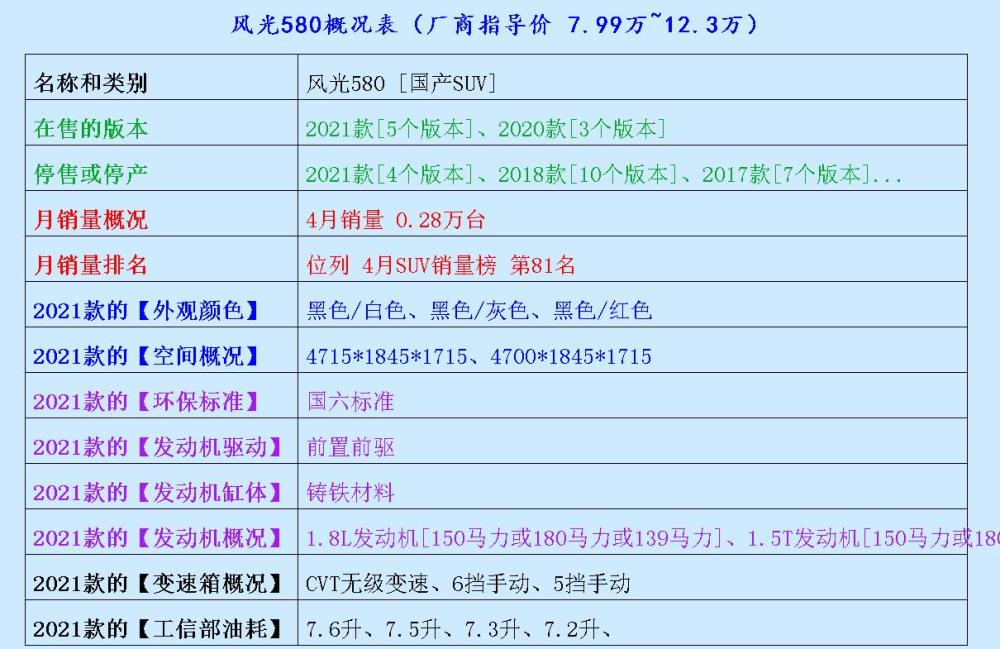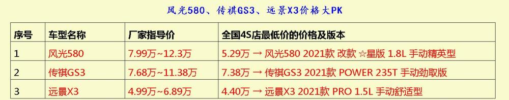 本年度很值得成功人士期待的三部车,风光580、传祺GS3及远景X3 嗨,大伙好呀,我们又见面了。今儿个说说这些事:SUV通常底盘悬架比较高,故此整台车瞅上去十分干净利索。今天和各位说说几种出了名颜值高劲省油的SUV车型,但愿本文的内容能给你们提供一些购车帮助。 第1款车型:风光580 销量概况:在东风小康品牌的加持下,风光580销量成绩无疑是牛气的,资料显示,风光580最近成功售出了0.28w部,成功击败了许多SUV级别的优秀车型。虽然它的销量排名不算很前,不过也仍然算是实至名归。 外观部分,全新的风光580的外观造型特别帅气,车身整个腰线也特别标致圆滑,开个三五年相信都不会out。车头前脸的设计特别富有美感,再有有神的LED大灯点缀其中,怎么看都不觉得丑。 空间部分,风光580的体积分别为4715mm、1845mm与1715mm,由此见得,这款车型给我们一种内部挺宽裕的感觉,因为这样的长度足以让后排坐数位小朋友也压根不会感觉拥挤。 动力方面,它的输出功率达到了139匹,变速箱则采用CVT无极配置,它的发动机则是由铸铁高档制作而成,所以具备强劲的抗压性及突出的耐磨性。排量方面,它不仅有涡轮增压版本(1.5T),同时也有自吸版本(1.8L)。 车友口碑:【最满意的细节】敝人对这辆风光580最点赞的一点首先是它的外观特别霸气,在12w左右的SUV的级别里应该是最为有特点的喇。首先是风光580的前脸设计非常成功,就如一只活泼生动的雄狮一般。另外,坐起来丝毫不会感觉到局促,并且风光580也特别耐开,堪称是东风小康的销量法宝之一。 最后不得不提是它极好的油耗表现了:目前风光580的技术的精度有所提升,所以风光580的油耗的控制技术也相应降低了,更加满足更多用车一族的出行需要。我走的大多都是城乡路况,再就是偶尔出差经国道高速比较多。最令我惊喜的是,这样重的一款车型,油耗还没有我原来想象中的这么高不可攀,油耗应该处于正常范围吧,这个成绩在竞品SUV领域应该称得上是强者喇。 车友口碑:【差强人意的地方】个人觉得风光580的悬架位置有点硬,尽管这样风光580的路感是比较清晰的,但是过凹凸不平的路段时,难免会牺牲大部分的舒适度。然后还有一点较不满意的是,跑高速的时候有时会感觉到有胎噪与异响,近光灯在下大雨的时候照明效果欠佳,视线非常模糊, 第2款车型:传祺GS3 外观部分,这款车型时髦感很强,很荣幸我拥有了它。前脸的前LED大灯分外光彩,中网特别大,还有一些镀铬的小点缀,两盏车前大灯好像野象的眼睛一样光彩夺目,瞧上去感觉特别有运动感。它的侧面采用独特的溜背式的设计,笔直腰线,也有夺目的LED尾灯相衬,气场唬人,且力量感十足。可以说传祺GS3走到什么地方都是很出彩。尾灯的辨识度也很高。所以,不少小哥哥均觉得它的整个外观属于偏运动、凌厉的“style”。原来入手这辆车子就是看中外观去的。 第3款车型 远景X3 4.99万~6.89万 外观概况 它的外观比上一代帅气许多,比如前脸的大灯风格就显得特别有神气,并且整车非常匹配市场消费者对汽车的外观审美需求,非常凌厉。 本文总结 上面分享给诸位的车型中,价格都是不一样的,价格是有所差异的,指导价较低的车型是远景X3,然后是传祺GS3,价格相对最高则是风光580,值得你们关注的是,很多时候标准价会与4S成交价的差别还是挺明显的。据悉,风光580、传祺GS3、远景X3的境内最低的4S报价分别低至5.29万、7.38万和4.40万。差距还是很大的,不知道诸位瞧上风光580还是传祺GS3呢?