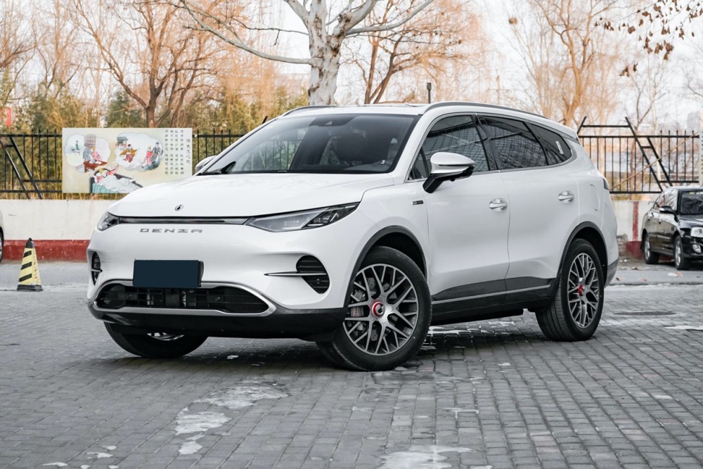 2019年,腾势推出旗下相当得意的作品腾势X,这款车完美的融合了比亚迪的电能科技和奔驰的高档设计,当其时这款产品也是被寄予厚望的。腾势X的外观比较科幻,有点像新势力造车品牌,前脸上部分采用封闭式格栅设计,下部分是熏黑处理的横条镀铬打造的镂空效果,两个大灯中间还采用了贯穿灯带。整车线条较为圆润,尾部也采用了贯穿车灯,与车头相呼应。