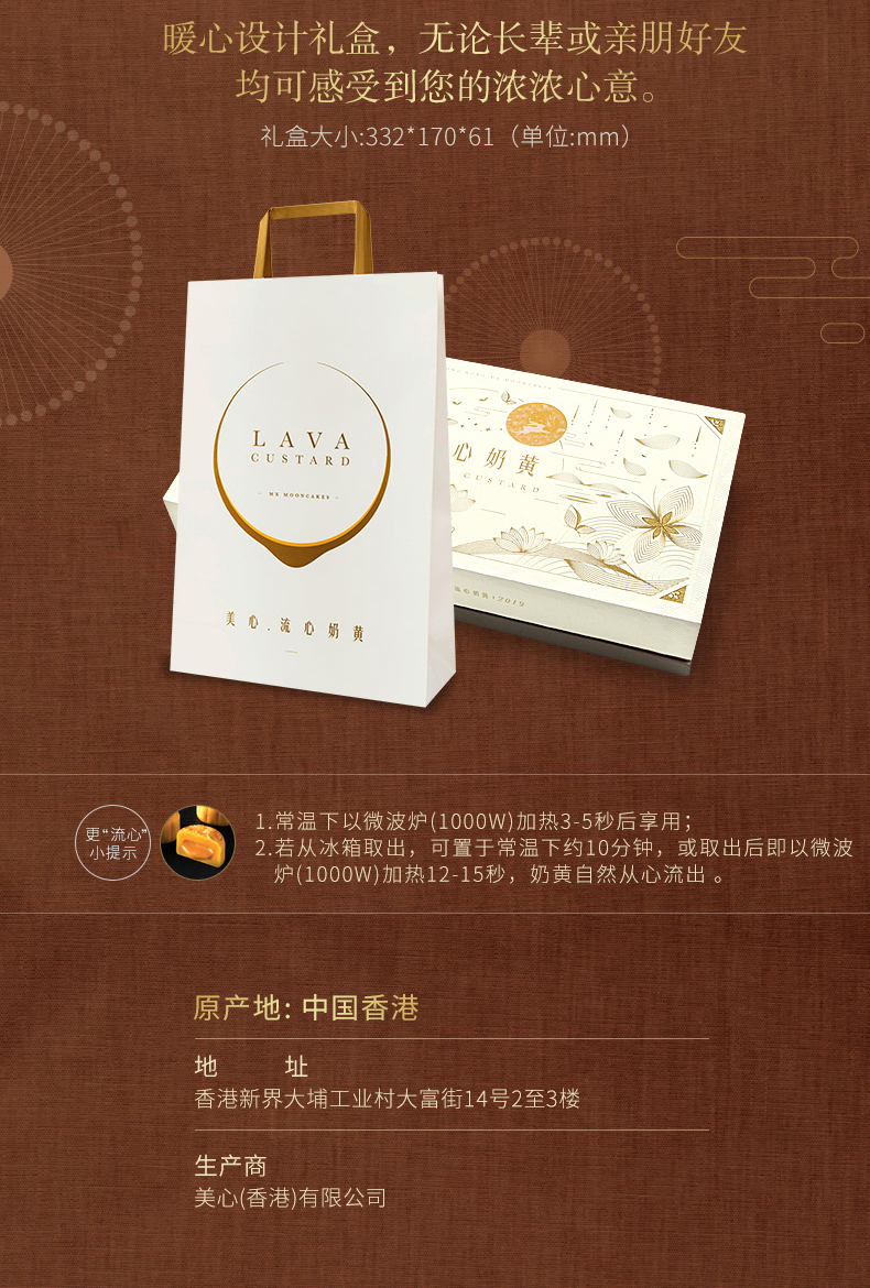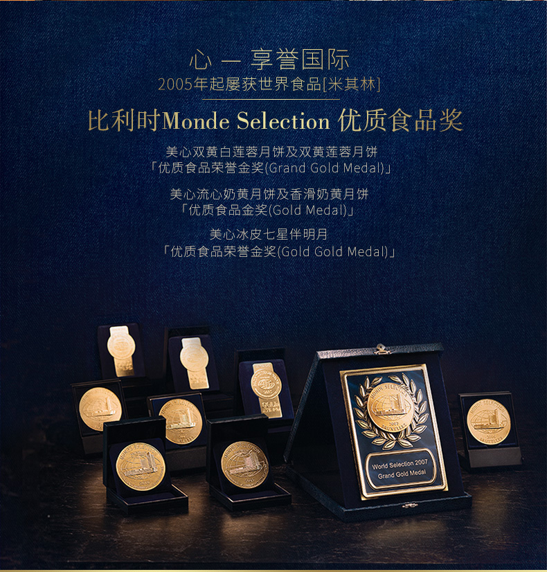 美心月饼心系一处, 坚持香港制造,专注每一个细节,全心投入做出最好的中秋味道。这份对传统月饼品优质高的执着,令美心月饼深获全港市民认同,连续20年香港销量冠军。美心月饼亦持续创新,创作了多款口味崭新的冰皮月饼,更引入「双重烘焗」技术于奶黄月饼,并推出全港首创的流心奶黄月饼,成为城中热 话。多年来美心月饼畅销世界各地,至今已营销至中国大陆、台湾、美国、加拿大、澳洲、新加坡及马来西亚等超过80个城市,享誉全球。美心月饼,以心,传颂 中秋味道。