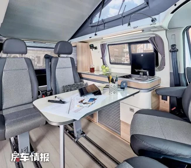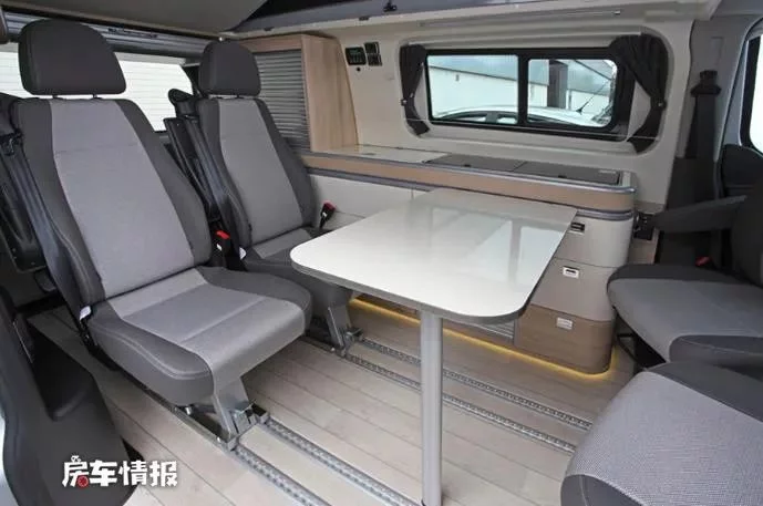 受限于车身尺寸,车内的布局较为紧凑,但却依然提供了两种不同的布局形式,第一种是四座模式,这时候车厢内部核载4人,驻车以后需要把主副驾驶座椅向后旋转,才能变成一个小型会客区。